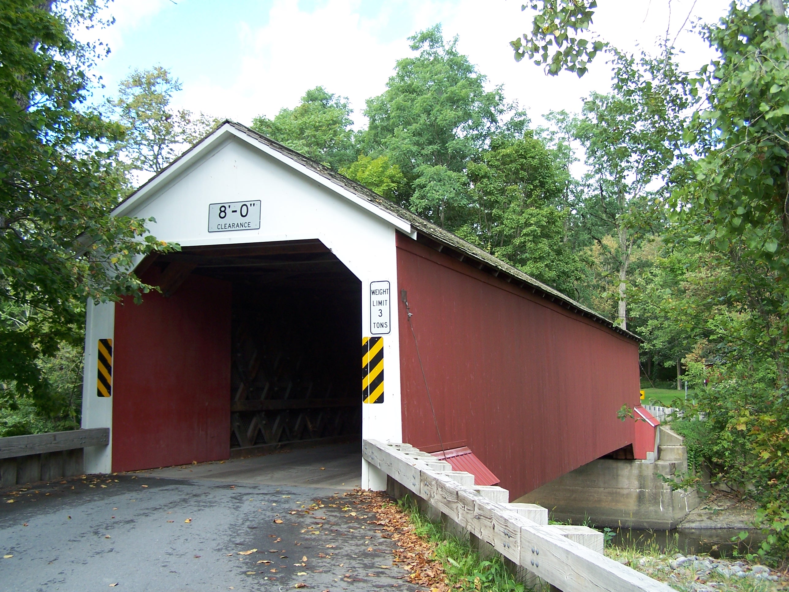 From Cambridge at the intersection of State Route 22 and State Route 313, take State Route 313 toward Vermont for 6 miles. Turn left onto Eagleville Road to the bridge.