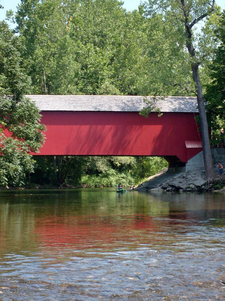 Built by Ephraim W. Clapp in 1858, this 100-foot-long,single span structure incorporates the Town lattice truss design patented on January 28, 1820, and again in 1835 by Ithiel Town of New Haven, Connecticut.